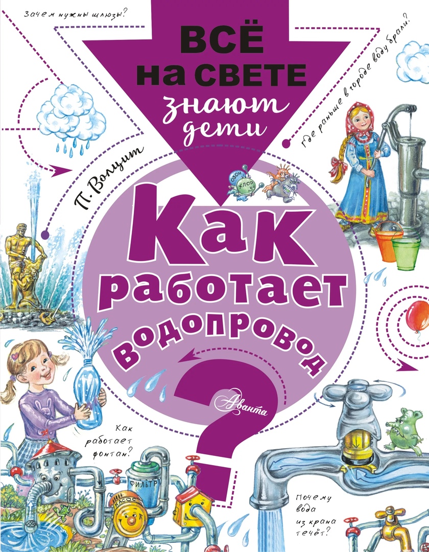 Автор книги «Как работает водопровод?» Пётр Волцит расскажет ребятам о воде и водных сооружениях: родниках, колодцах, скважинах, каналах. Поможет разобраться, как устроен современный водопровод, и даже подскажет, как починить капающий кран!