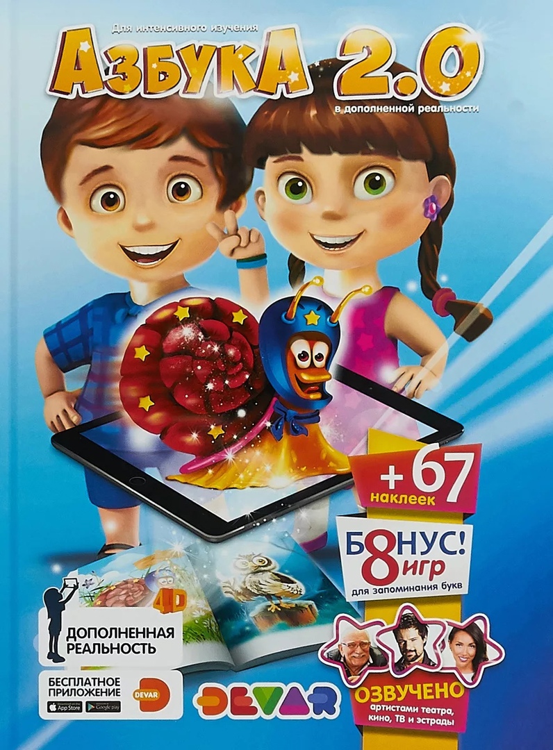 В этой книге каждой букве алфавита посвящена целая страница с персонажем, стихами, прописью и раскраской. Благодаря технологии дополненной реальности героев можно оживить на экране смартфона или планшета и перенести со страниц прямо в реальный мир!