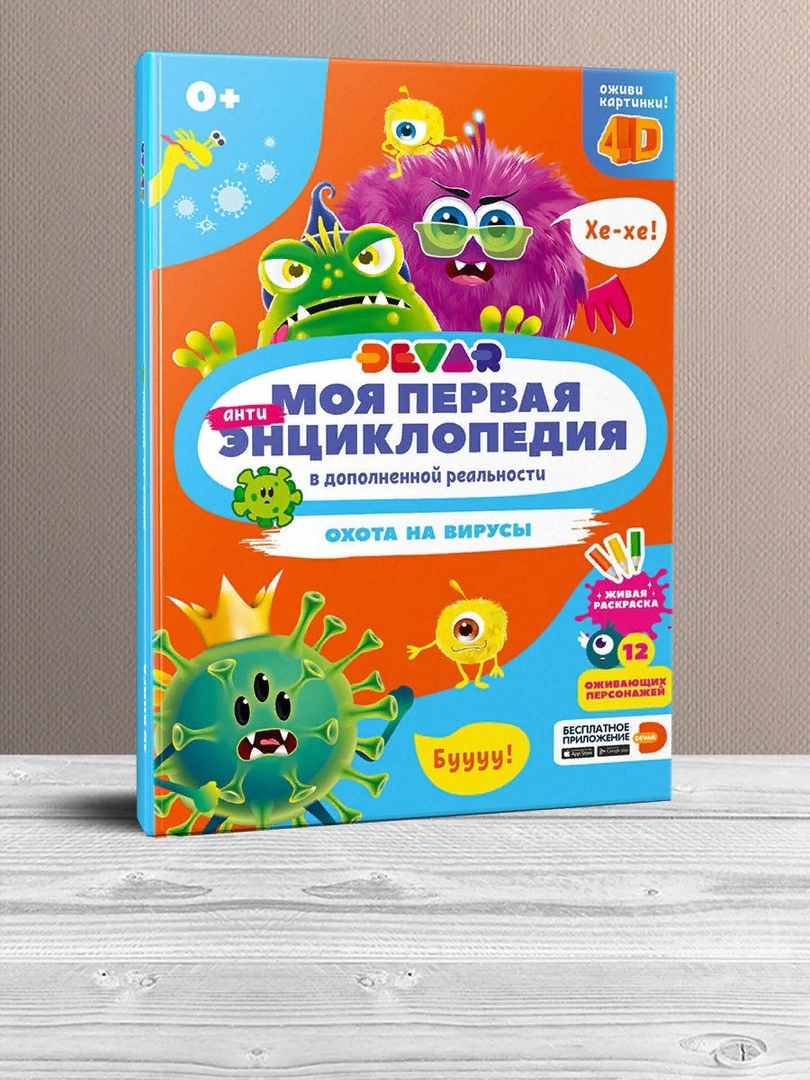 В дополненной реальности на экране смартфона или планшета можно оживить персонажей, послушать их рассказы и песни с вредными советами, увидеть, как они выглядят под микроскопом, и познакомиться с бытовыми ситуациями, в которых они проявляются. А развивающие задания, раскраска и диплом внесут свой вклад в развитие творческих способностей малыша.
