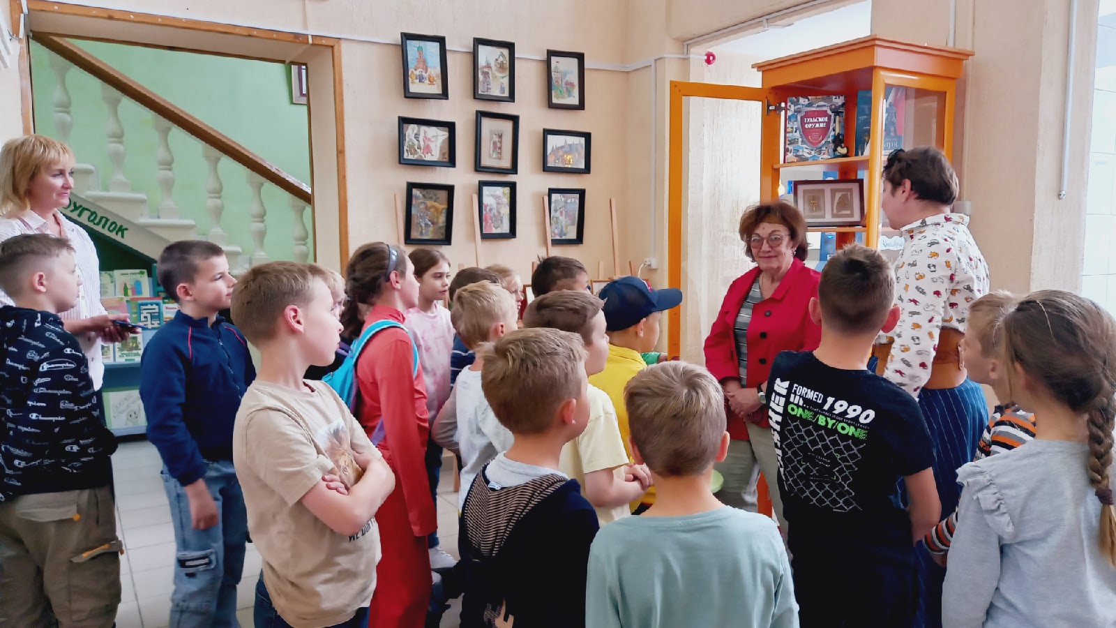 За художественное наполнение пространства отвечают две другие экспозиции. В фойе представлены оригиналы иллюстраций Вадима и Ярославы Сташкевичей – художников-оформителей издания «Тульский кремль для детей». А на лестнице младшего абонемента можно увидеть работы победителей первого международного конкурса «Узорная буквица» (куратор по Тульской области – Епархиальный культурно-просветительский центр «Фавор»).