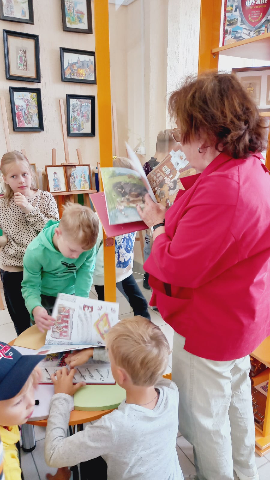 Первая экспозиция – книжная: тульское издательство «Свамия» представляет свои новинки. Здесь есть такие рекомендуемые для детского чтения книги, как «Тульский кремль для детей», «Глина в сказке, глина в были. Гончарное искусство Тульского края» и другие. На открытии экскурсию для учеников школы Монтессори провела Мексина Ирина Анатольевна – главный редактор издательства.