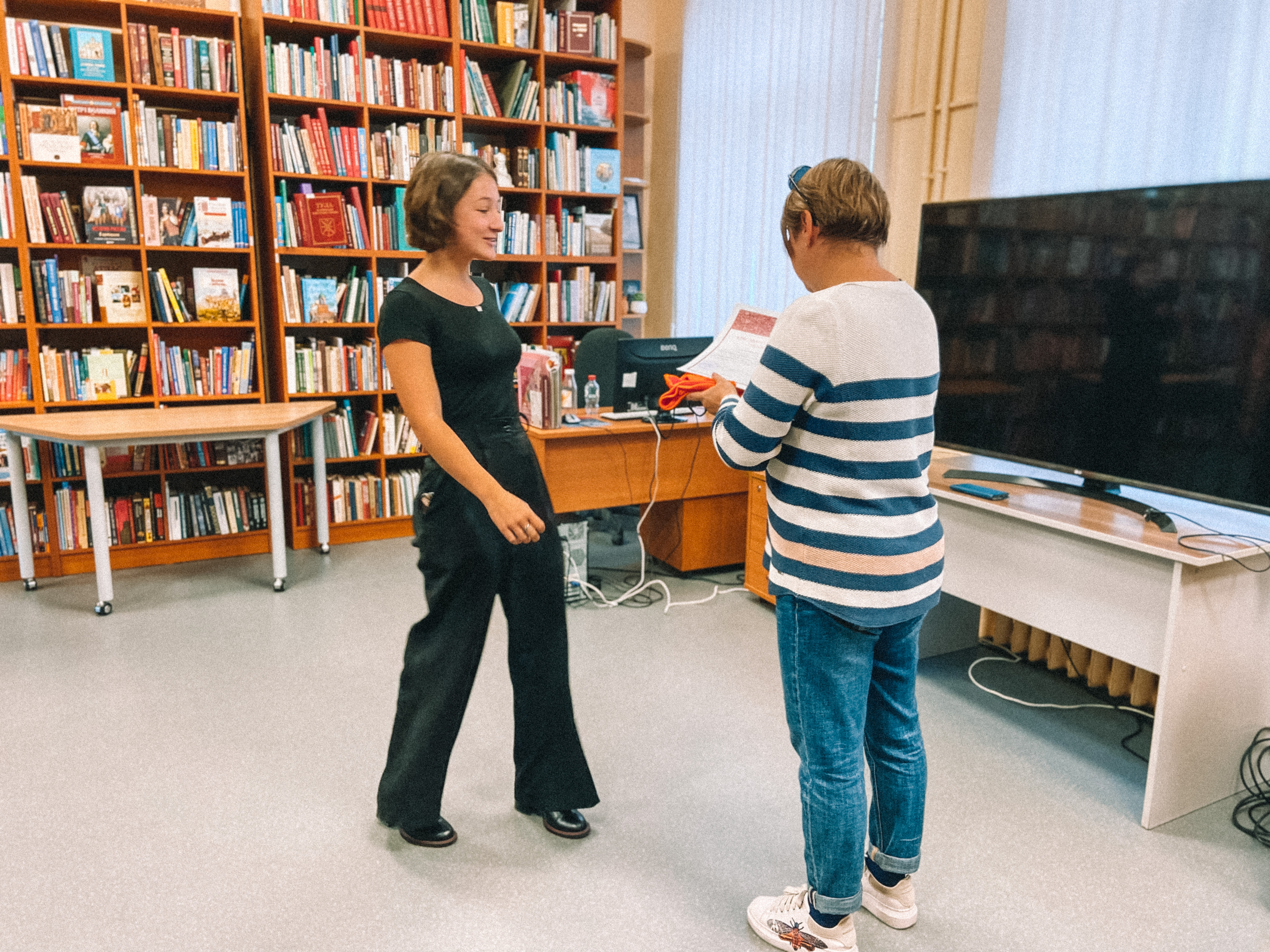 Волонтёры научились разной библиотечной работе: они расставляли фонд, встречали читателей и советовали им книги, заполняли формуляры, искали нужные экземпляры.