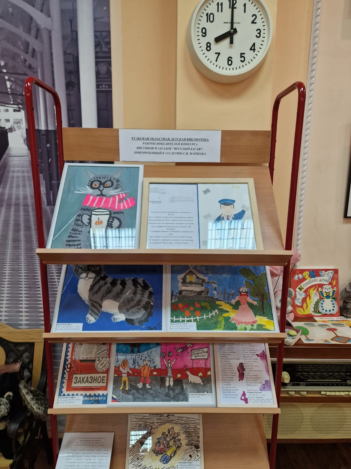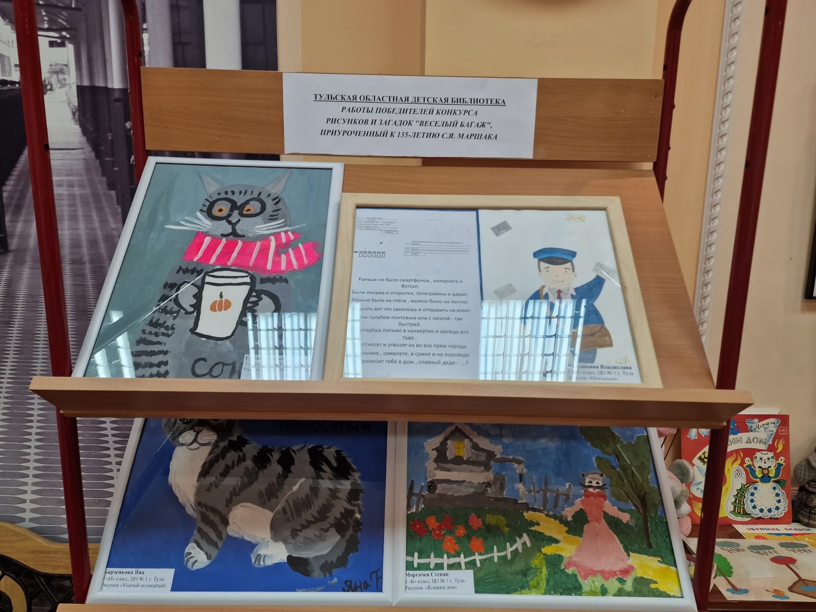 Среди победителей конкурса «Весёлый багаж», проводившегося в Тульской областной детской библиотеке в течение октября, были отобраны несколько работ, которые отправились в Мемориальный литературно-просветительский музей С. Я. Маршака при ИСПО им. К. Д. Ушинского ГАОУ ВО «МГПУ». Это картины Илюхиной Алисы, Моргачева Степана, Савичевой Валерии, Барзенковой Яны, Сердюк Софии, коллажи и загадки Подушкиной Владиславы и Малютиной Софьи, стихотворение Рыжик Милены, проиллюстрированное коллажем из работ Щучкиной Ксении, Ефановой Софии, Оларь Софии, Трухановой Софьи, Сальниковых Полины и Тимура, Мазуровой Софьи. В музее уже оформили тематическую зону!