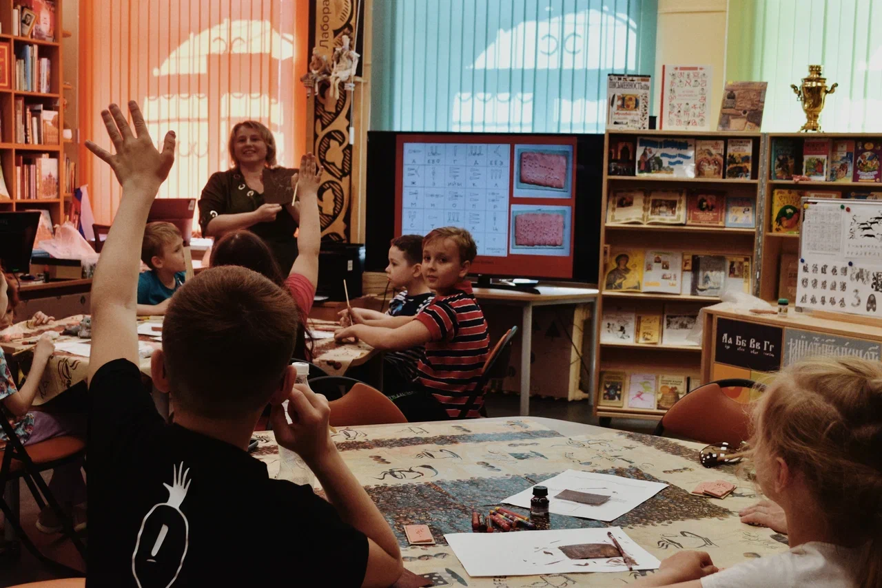 Праздничная программа началась ещё днём, в 14:00, с мастер-класса «От рисунка к знаку, от знака к букве», организованного в пространстве лаборатории «ЗнайЧитай», где есть интерактивные зоны и артефакты по истории письменности: имитации Белозерского петроглифа и клинописной таблички с отрывком самого большого литературного произведения, написанного клинописью, «Эпос о Гильгамеше». Участники не только узнали о рисуночном письме, появлении фонетических алфавитов, первых школах в древнем Шумере и славняских азбуках, но и своими руками изготовили клинописную табличку, петроглиф и открытку с печатной буквицей методом штамповки.