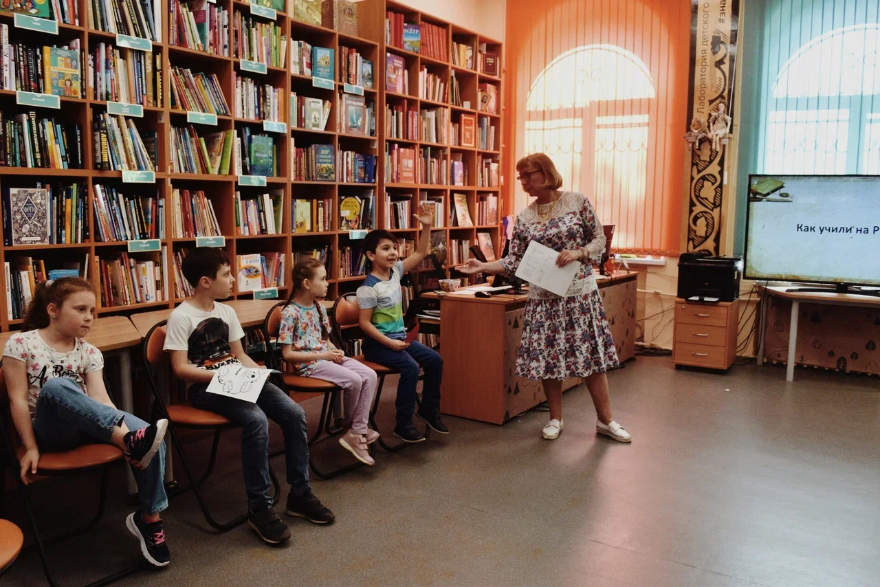 В 16:00 для участников квеста «За пределом книги», приуроченного к Году педагога и наставника, пространство библиотеки превратилось в линию времени, на которой были расположены станции, посвящённые школам разных исторических периодов. Дети смогли отправиться в Каменный век и узнать, как передавали знания в первобытном строе, попробовать свои силы в древнерусских играх «Коробейники», «Гори, гори ясно!», «Бояре», «Городки», послушать рассказ об учении во времена Ивана Грозного и о реформах Петра I, очутиться на уроке Яснополянской школы Л. Н. Толстого и разгадать тайну зелёной палочки, побывать в классе 20-х годов ХХ века и в школе будущего. Чтобы найти волшебный кристалл мудрости, на каждой станции нужно было выполнять игровые задания, в том числе чертить циркулем, решать ребусы, искать книги на книжных полках.
