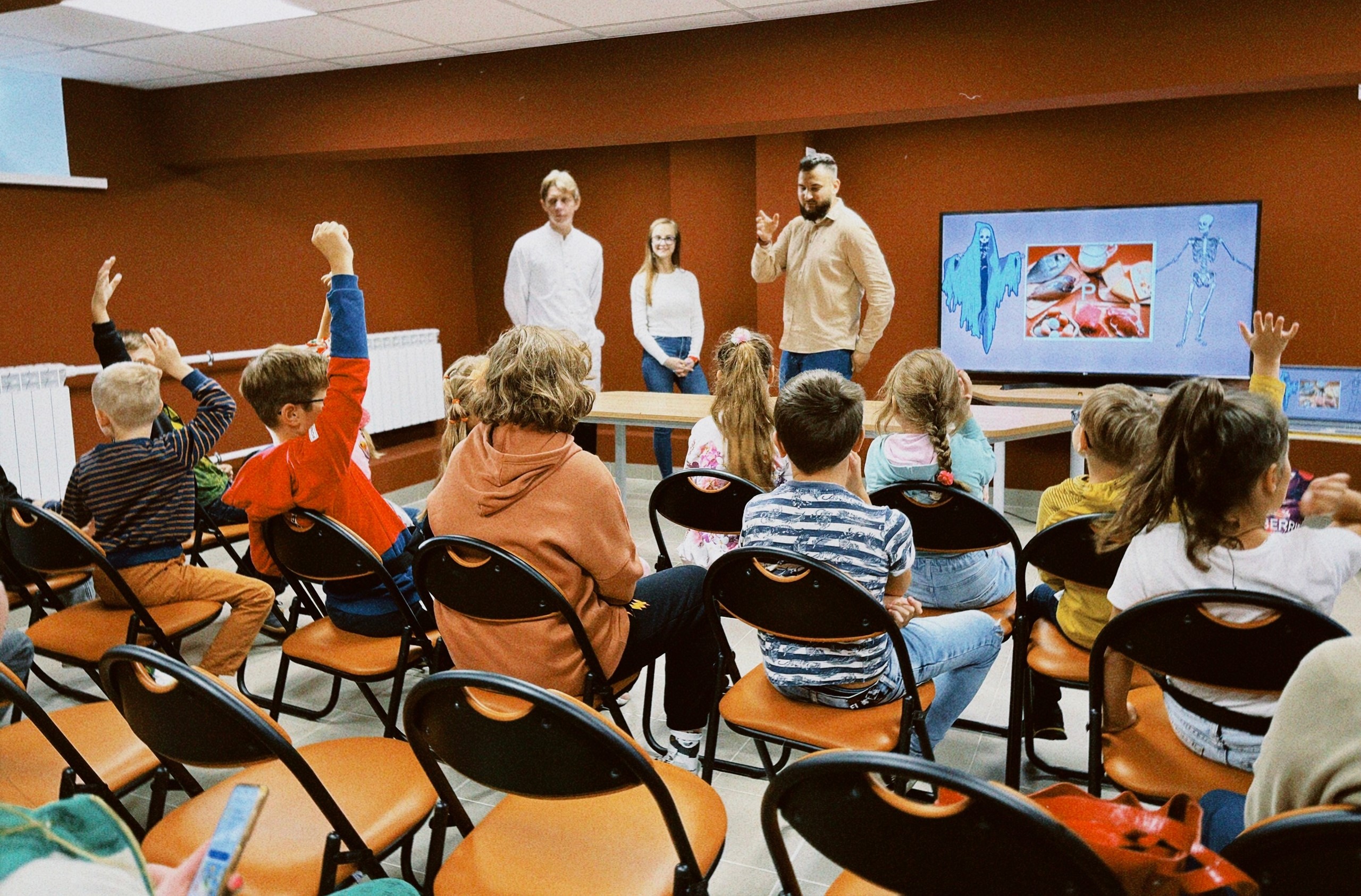 Еще один тематический блок проекта – познавательный. Тульская студия изучения английского языка Bebigger провела для нас мини-урок английского языка; Маргарита Мылина– арт-терапевт и педагог-психолог – научила с помощью рисования определять свои и чужие эмоции; действующий врач и руководитель школы юных врачей Семен Помещиков показал, как правильно накладывать жгуты, делать перевязки и вводить уколы, а руководитель Тульского клуба спелеологии Никита Горшков поделился историями о пещерах, о работе спелеологов и показал снаряжение: щелкать жумаром, кролем, карабинами и мерить каску было весело!