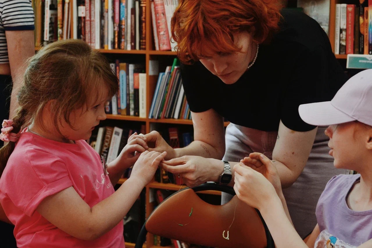 У проекта сложились свои традиции. Кто не любит фенечки из бисера? Мы – любим, а потому каждый год обязательно уделяем время бисероплетению. Это лето не стало исключением: вместе с Дарьей Лебедевой сделали много забавных колечек с ромашками, утятами, лягушками и кроликами.