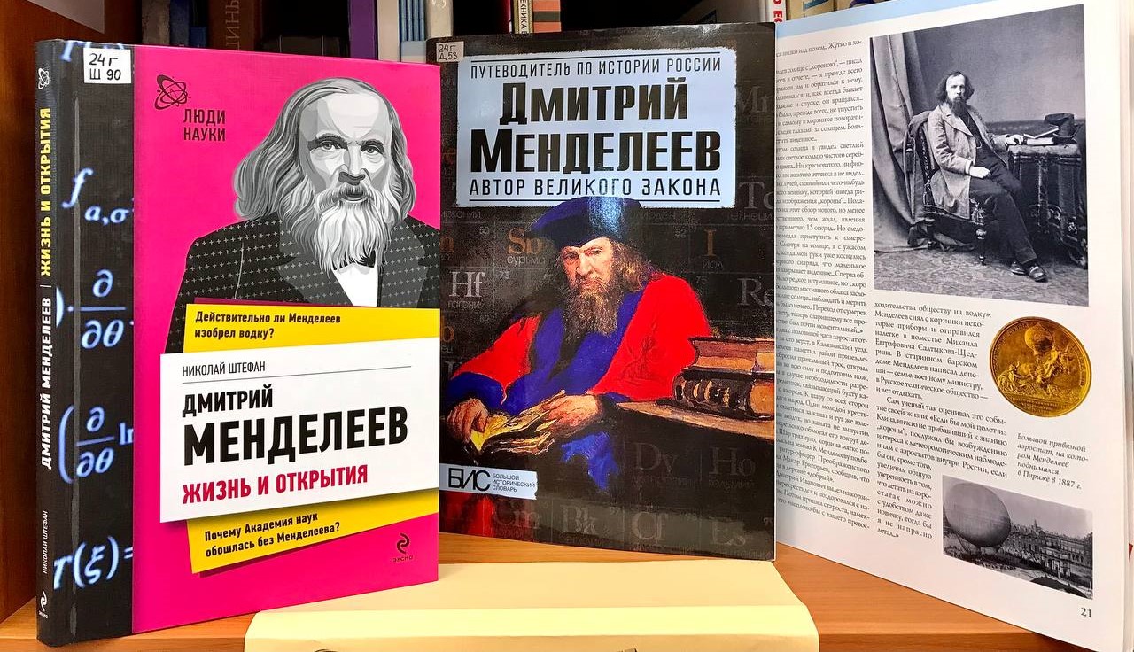 Что посмотреть: книги о жизни и научном наследии Д. И. Менделеева, исследования в области химии, физики, метеорологии, экономики.