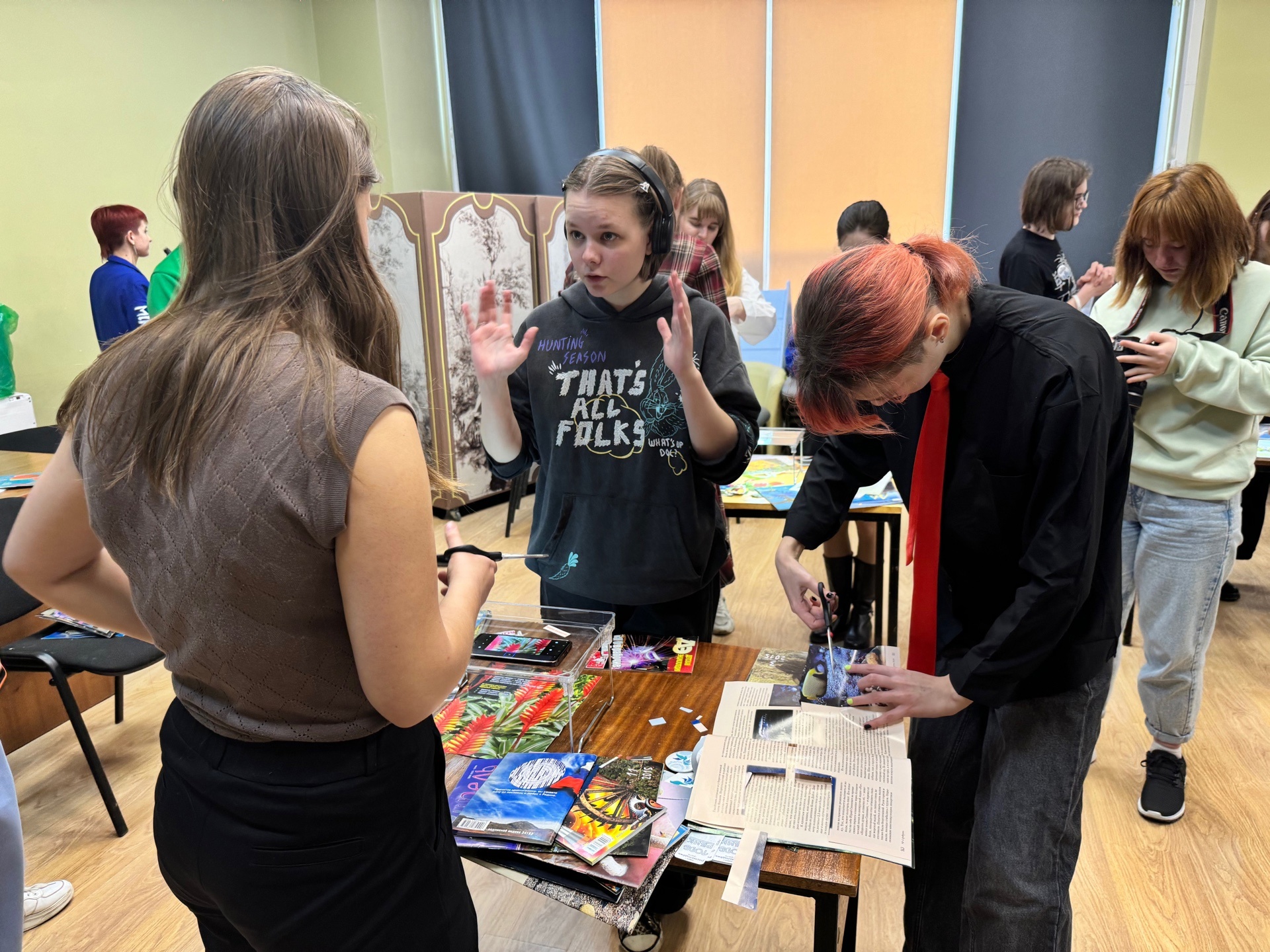 Куратор проекта Галия Трушечкина делится опытом организации конкурса на базе библиотеки и называет имена победителей. Лучшие работы показываются на большом экране.