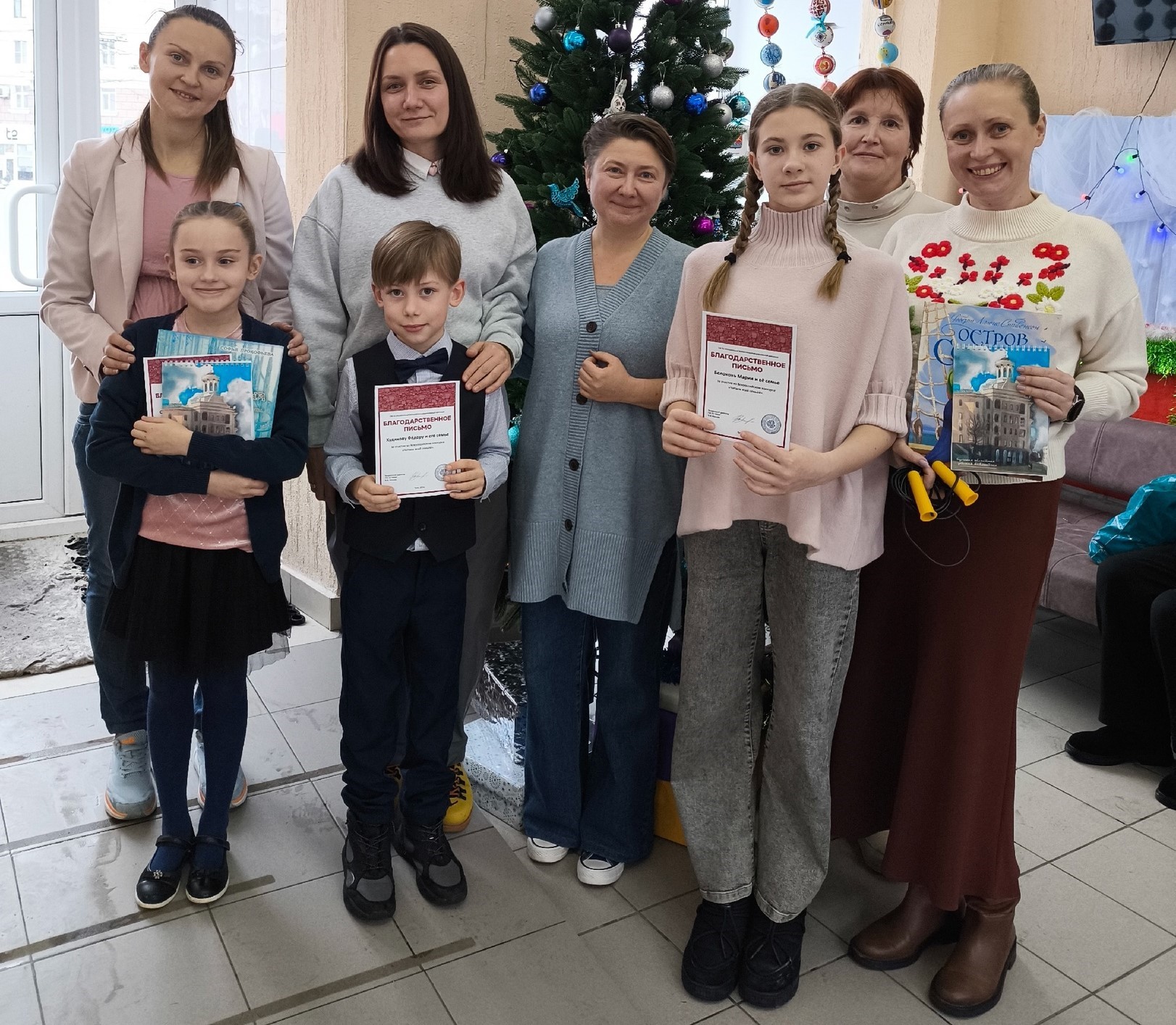 Семьям вручили благодарности от библиотеки и памятные призы: книги и фирменные блокноты. А ещё, чтобы чтение чередовалось с подвижными играми, ледянки, клюшки и скакалки.