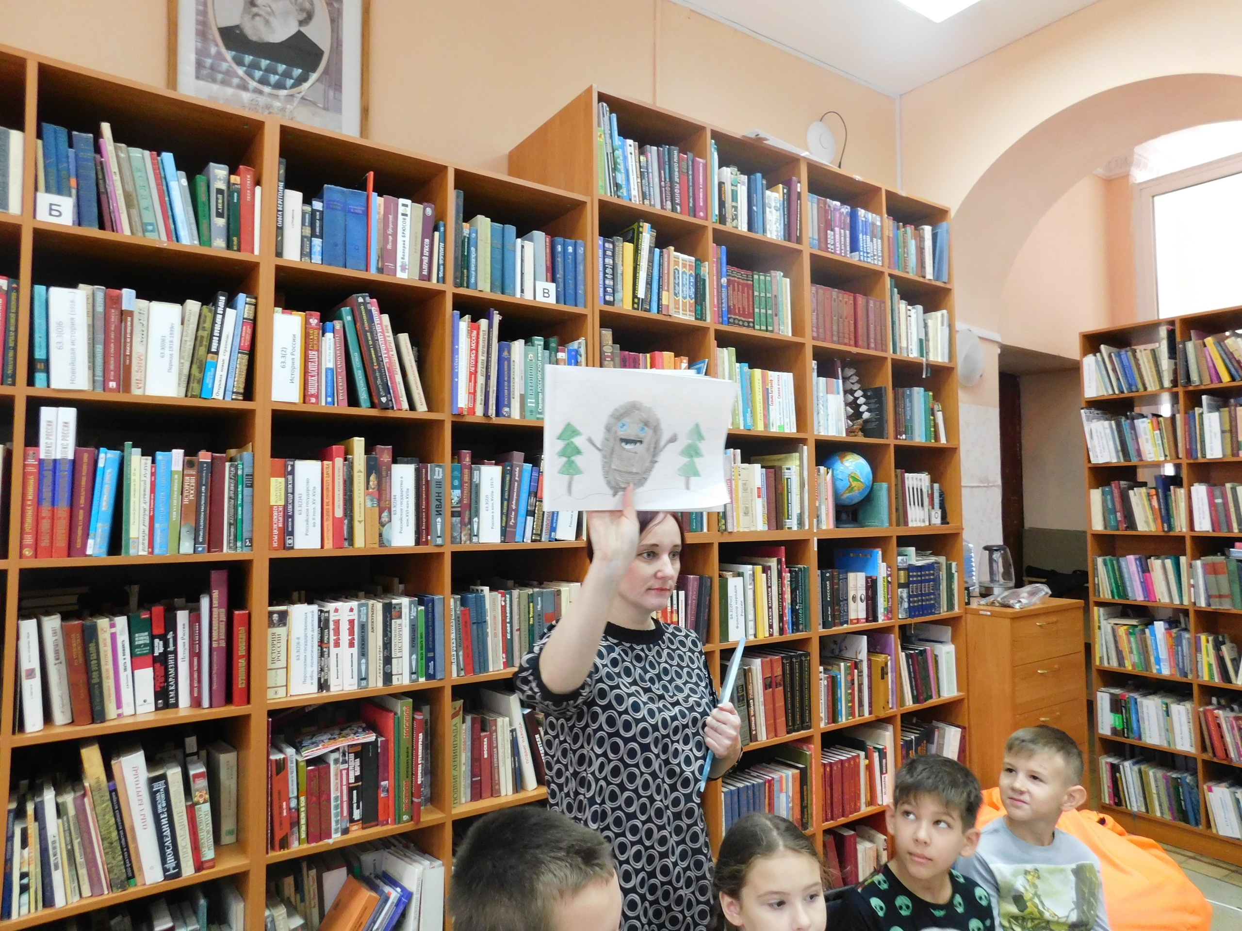 После все вместе сочиняли и читали вслух небылицу в стихах. А в конце встречи Екатерина Старостина подарила экземпляр своей новой книги нашей библиотеке!