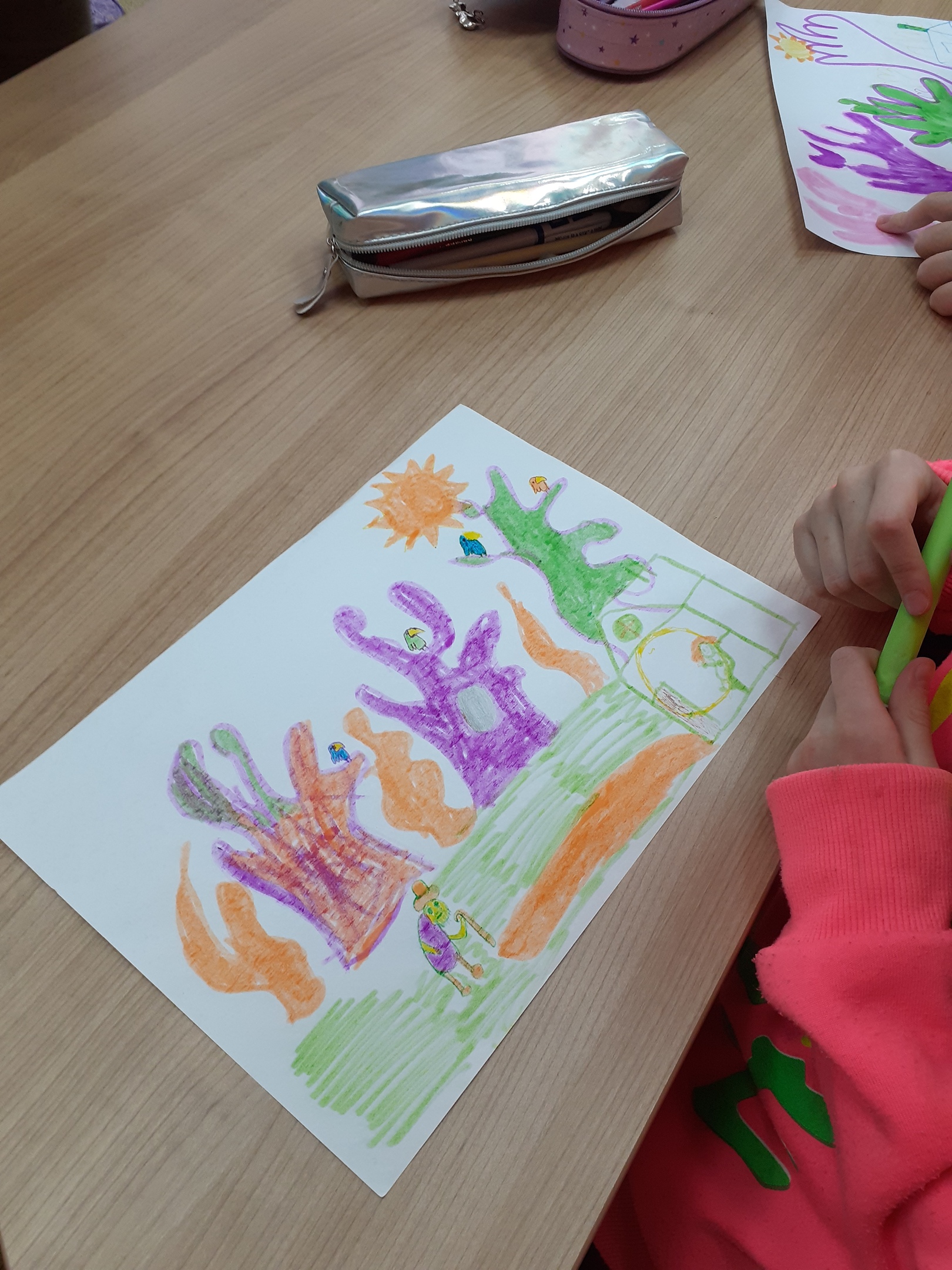 Такой мастер-класс не заменяет школьного урока рисования, а развивает фантазию и учит чувствовать создаваемую картину целиком. Впрочем, и некоторые азы художественного творчества участники повторили: что такое краска и что такое цвет, как подобрать карандаши и фломастеры по цветовой гамме.