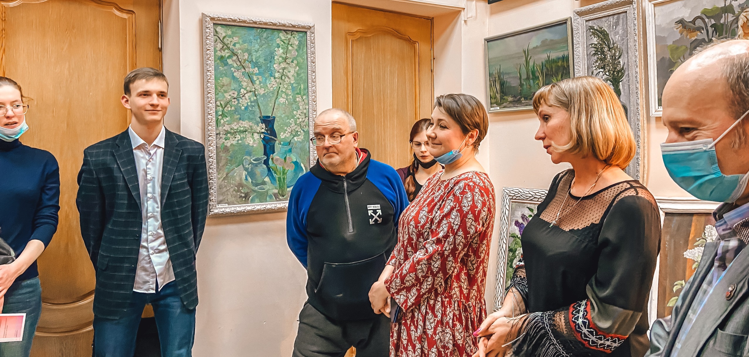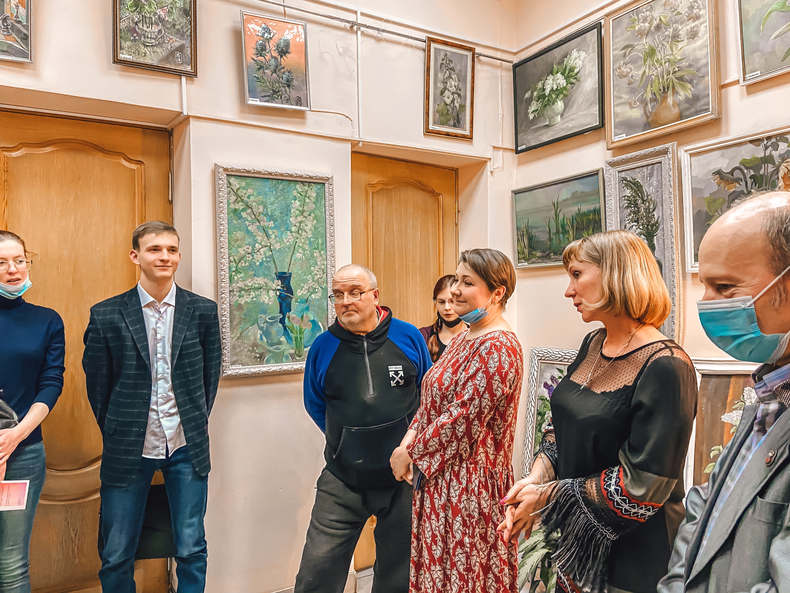 23 марта на нашей лестнице открылась новая выставка картин тульских художников. Тема выставки — цветы.