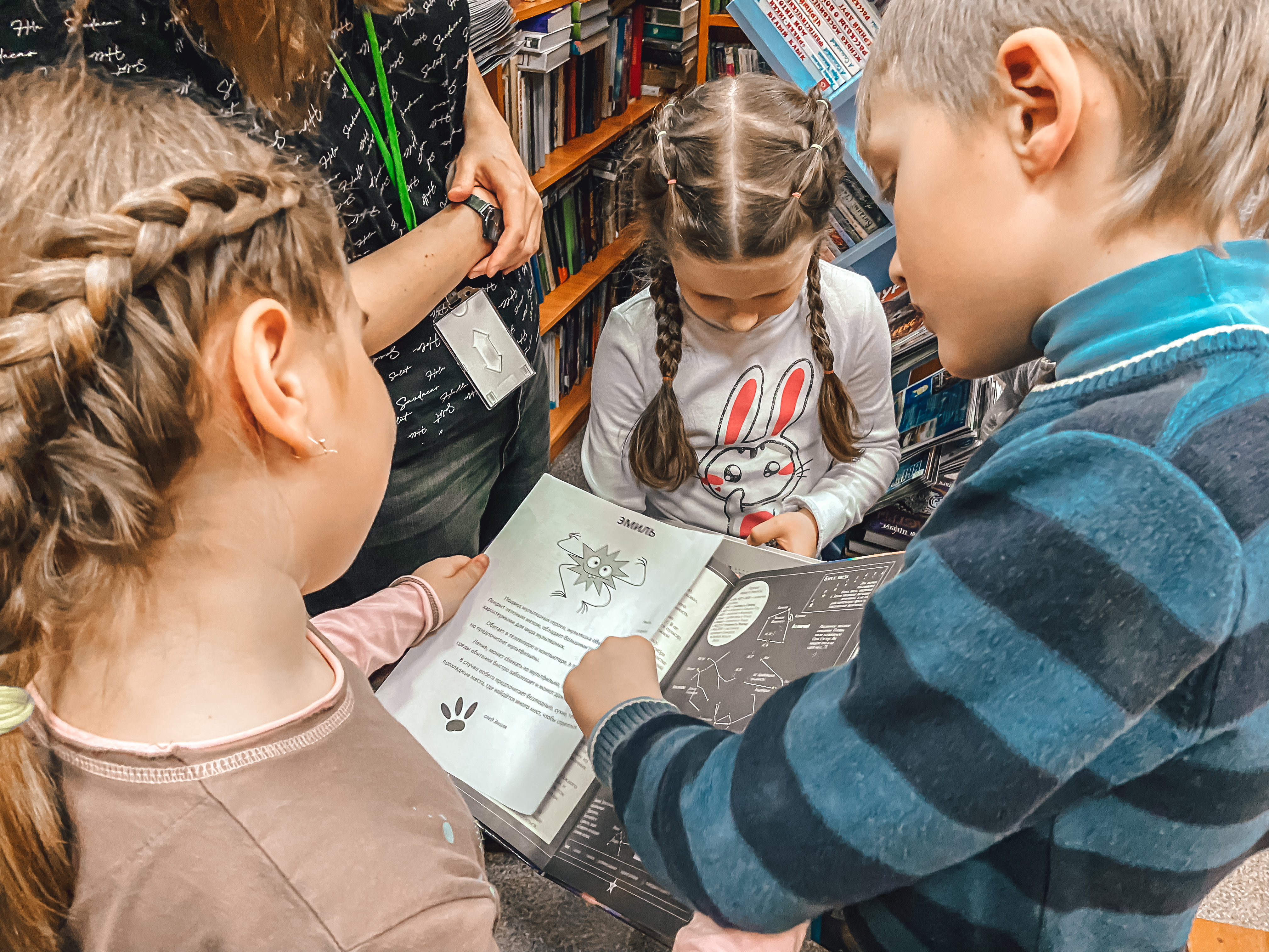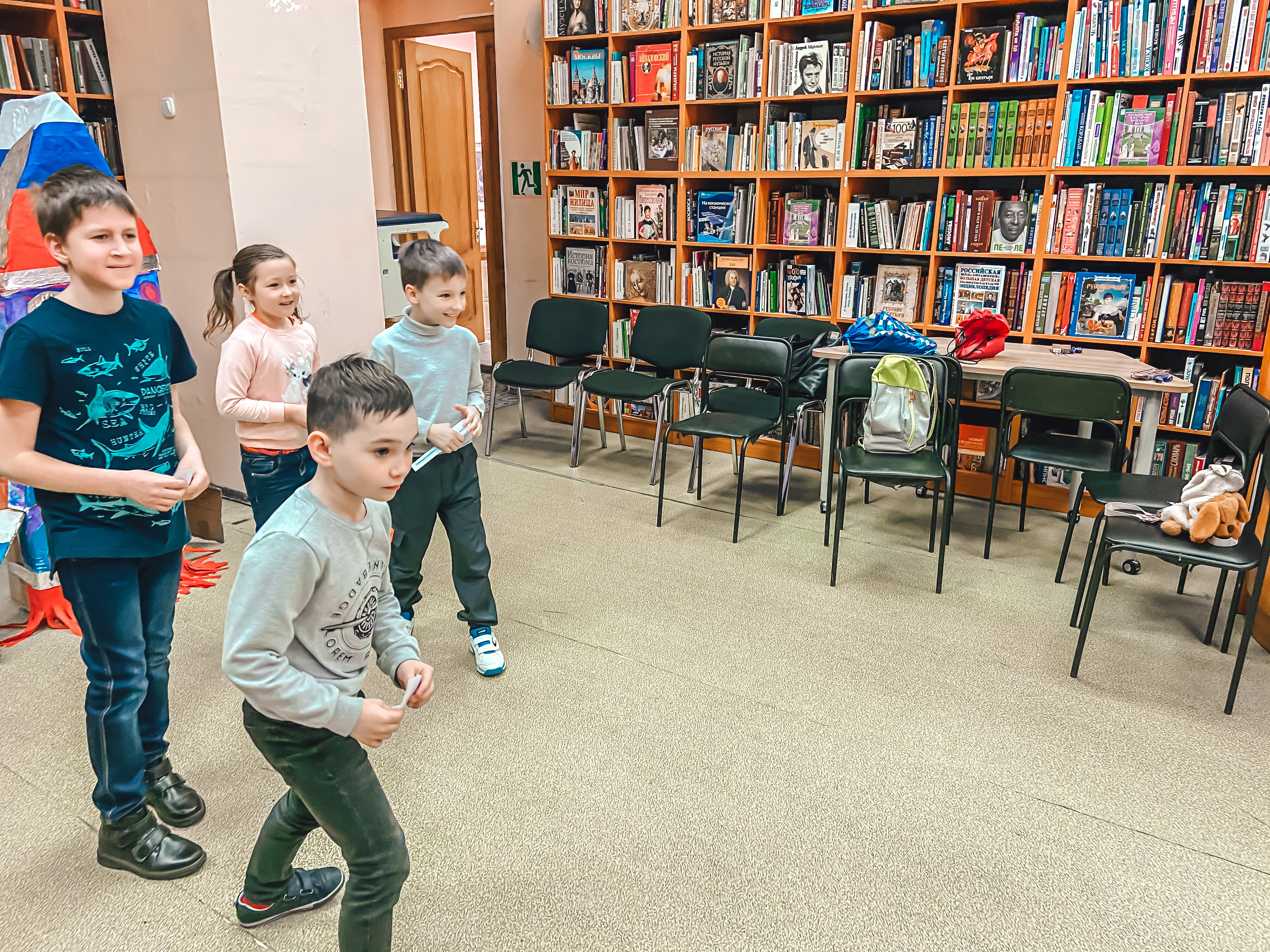 А под конец дня из мультфильма про космос сбежал один из героев. Хорошо, что участники анимационного квеста «Поймай мультяшку» помогли библиотекарю найти его! Для этого им пришлось познакомиться с разными книгами, разгадать много загадок, решить сложные головоломки, быть очень внимательными и ловкими.