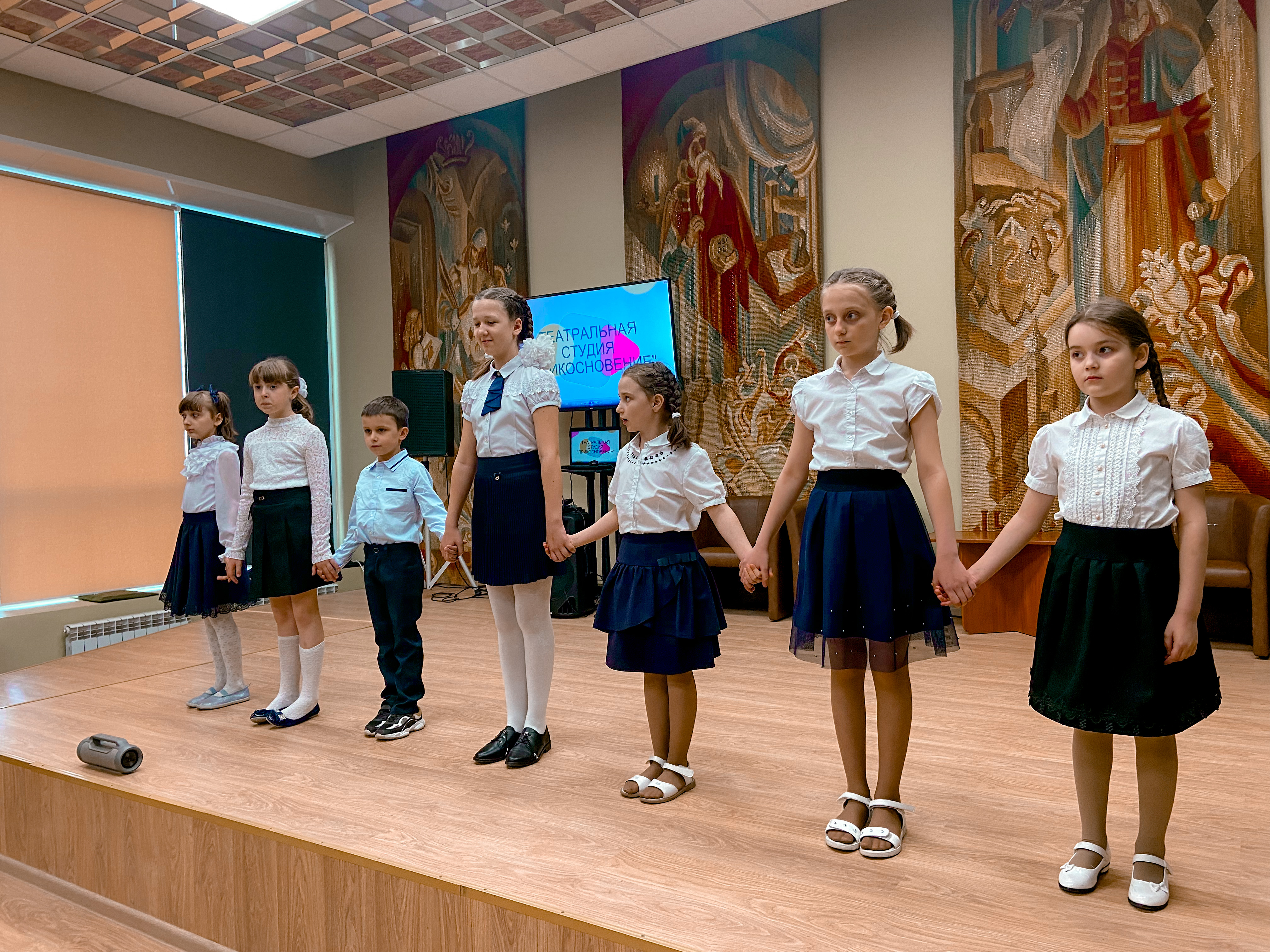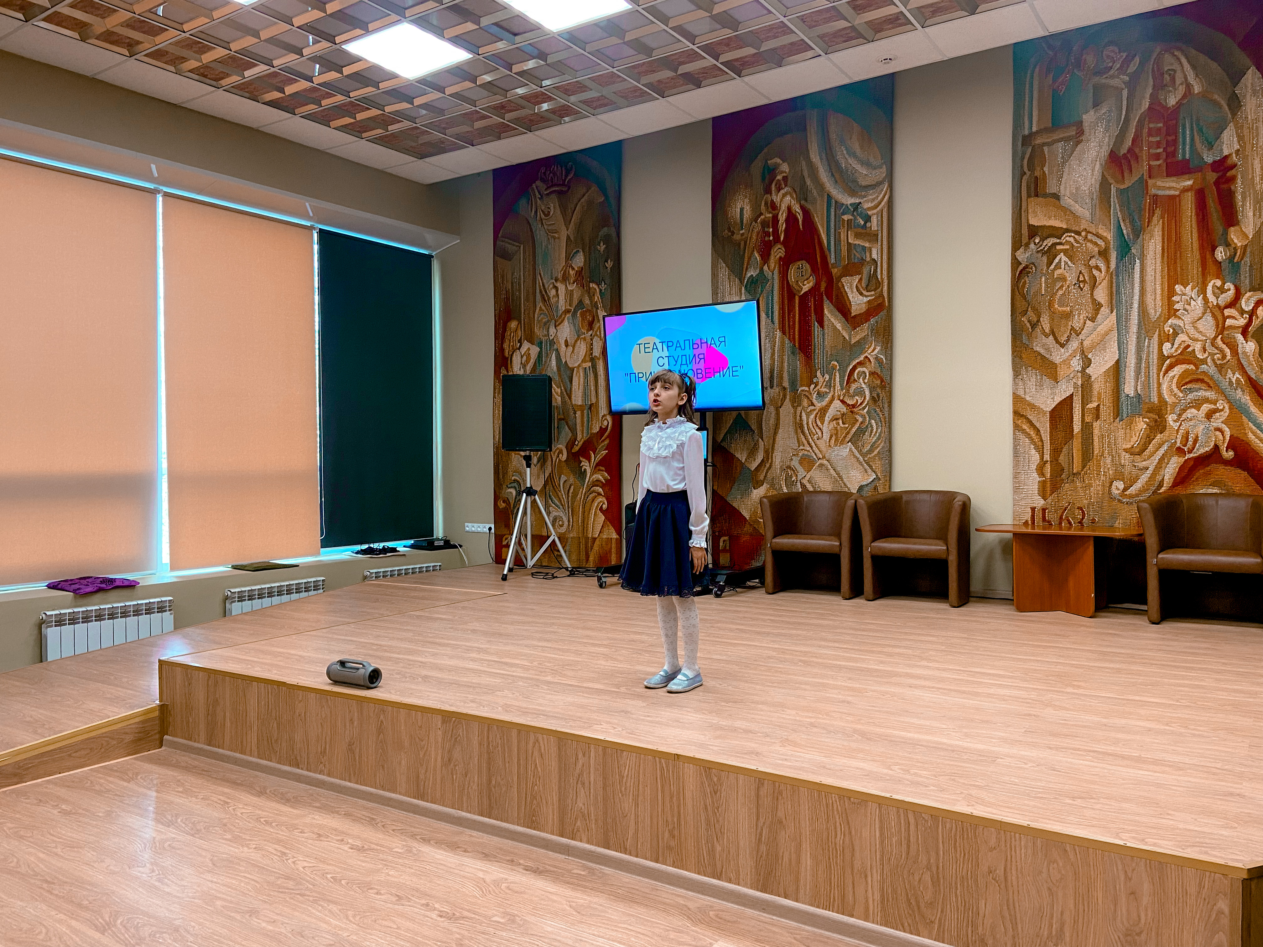 13 мая в Горбовском зале Тульской областной научной библиотеки на настоящей сцене состоялось заключительное выступление этого сезона. Оно получилось очень эмоциональным! Сначала родителям показали, что такое обычное театральное занятие: какая бывает разминка, как важно двигаться и говорить одновременно, что такое «тявкать в диалоге» и зачем мычать по очереди. После небольшого перерыва ребята представили чтецкую композицию, посвящённую Великой Отечественной войне. Прозвучали стихи Ольги Берггольц, Роберта Рождественского, Юлии Друниной.