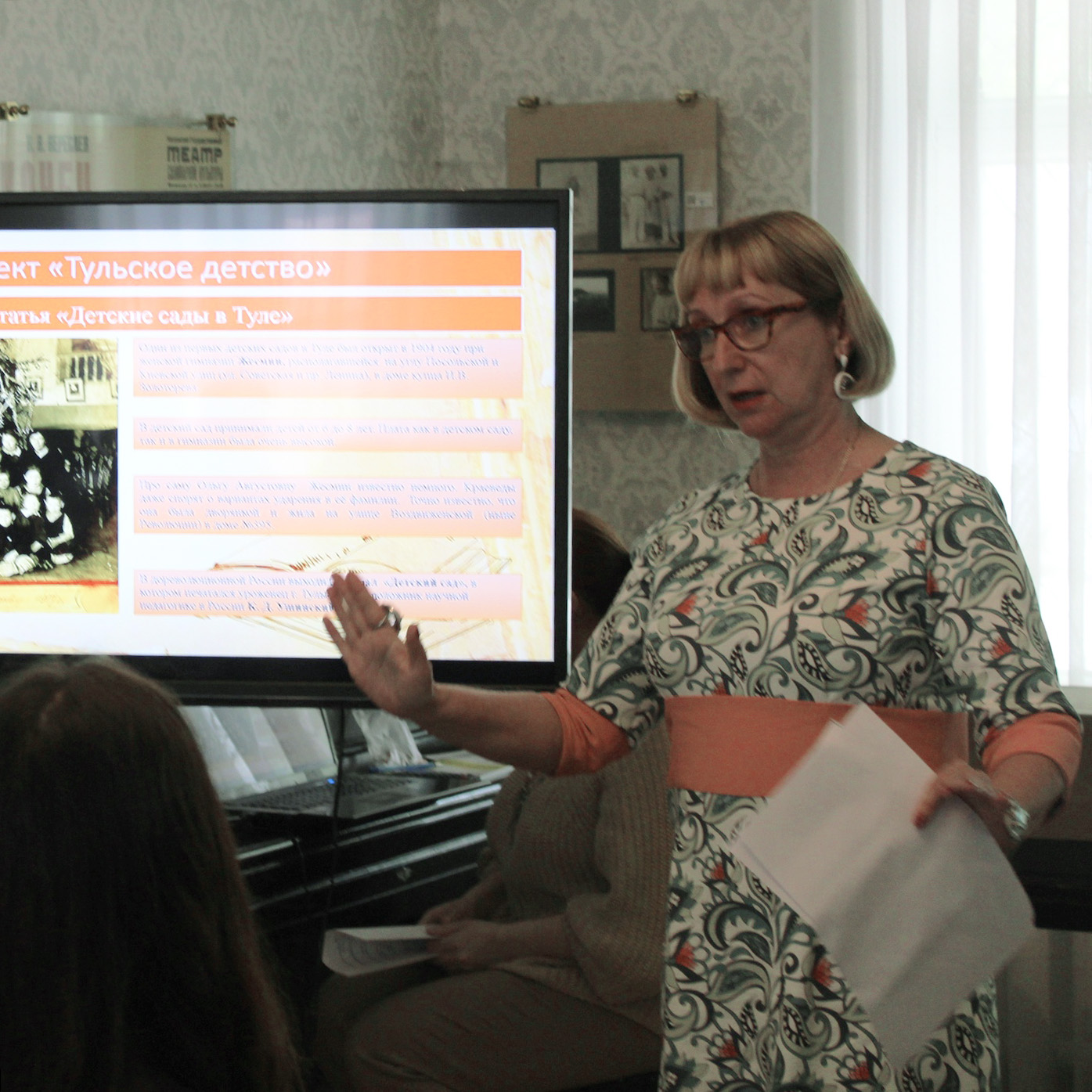 В начале 2021 года мы запустили проект «Тульское детство» и опубликовали уже три статьи, в которых говорится о том, как жили тульские дети из разных сословий в XIX–XX веках. На семинаре Инна Евгеньевна рассказывала, во что играли дети 100 лет назад, какую одежду носили, как учились и развлекались, какие были поощрения и наказания.