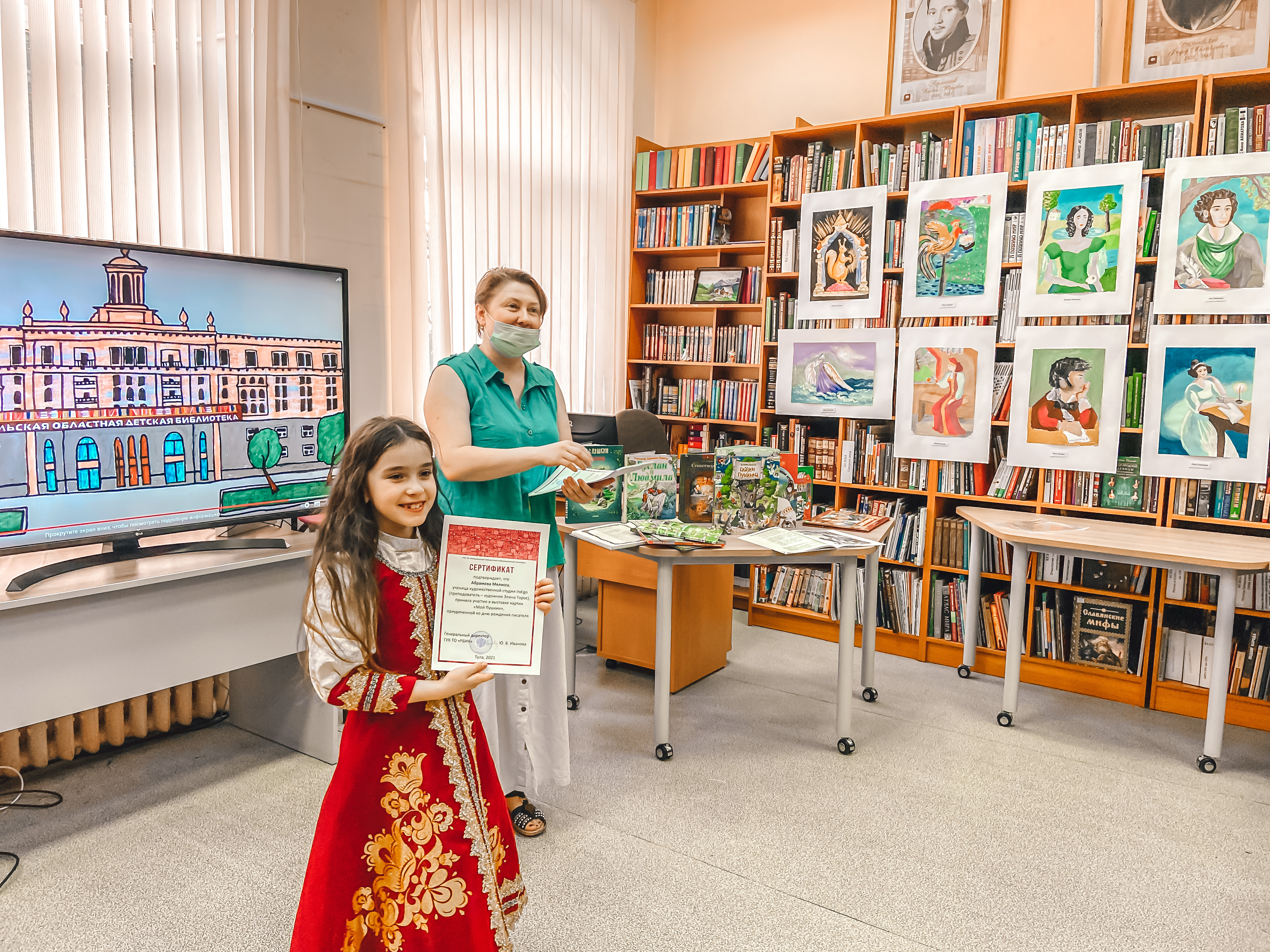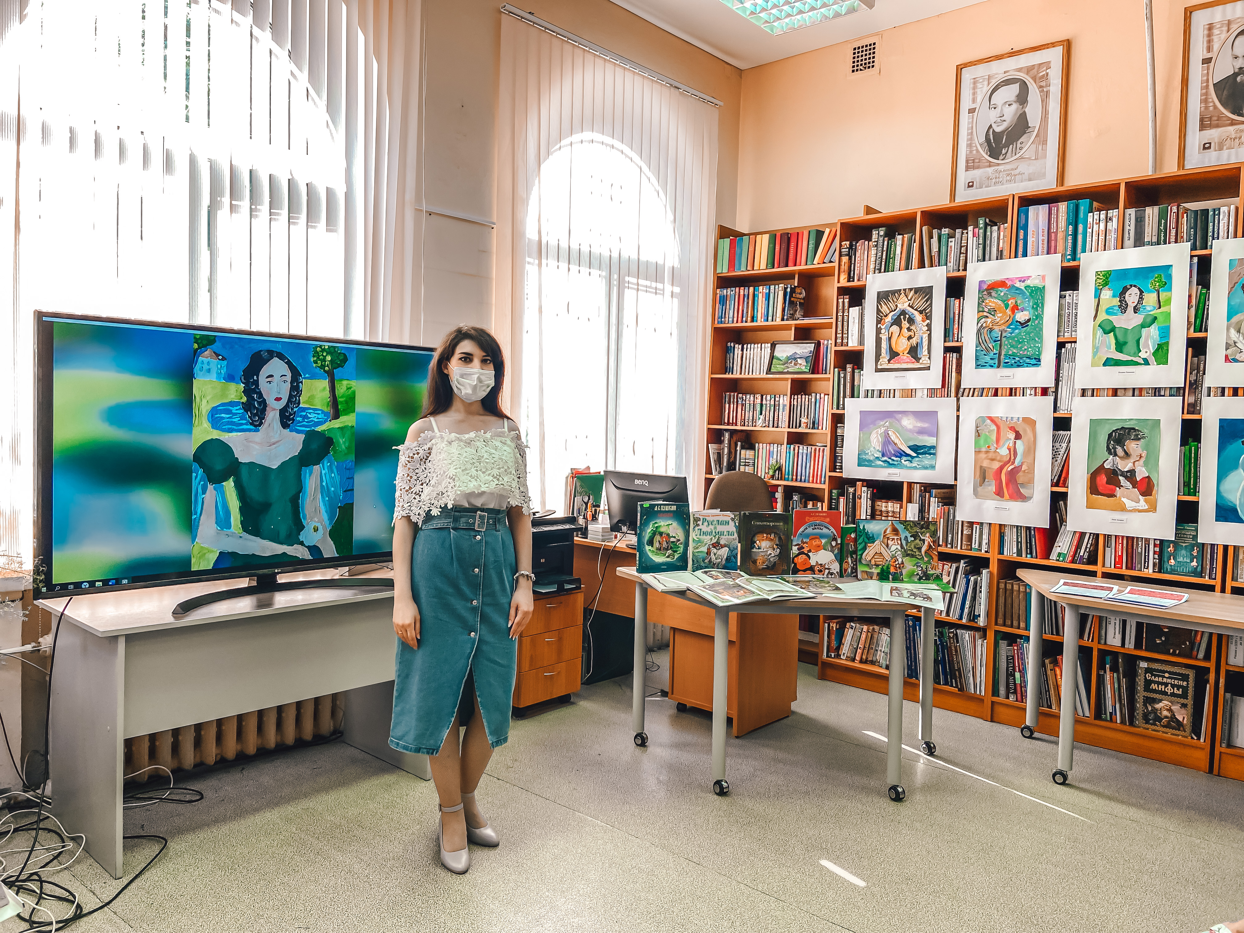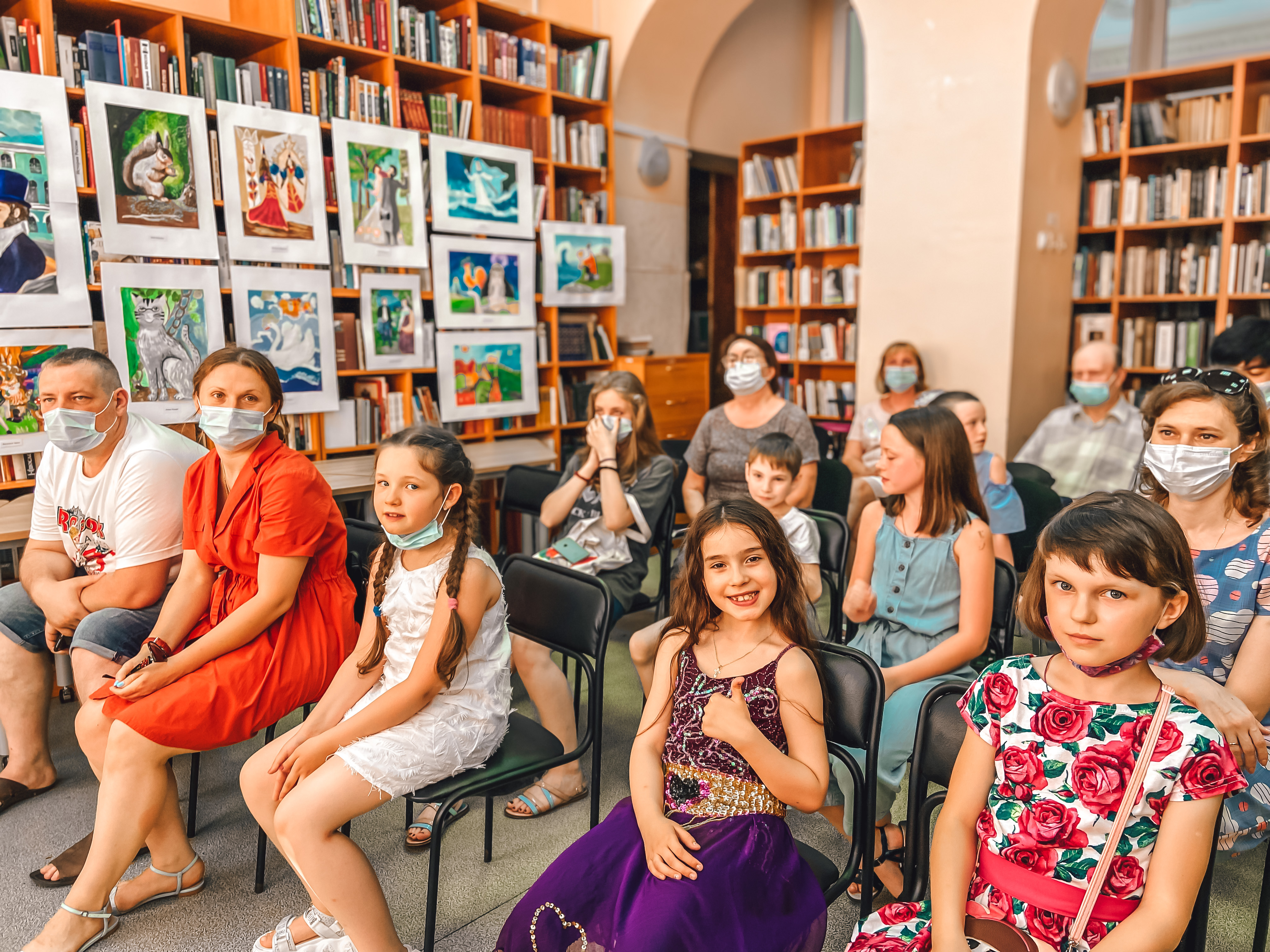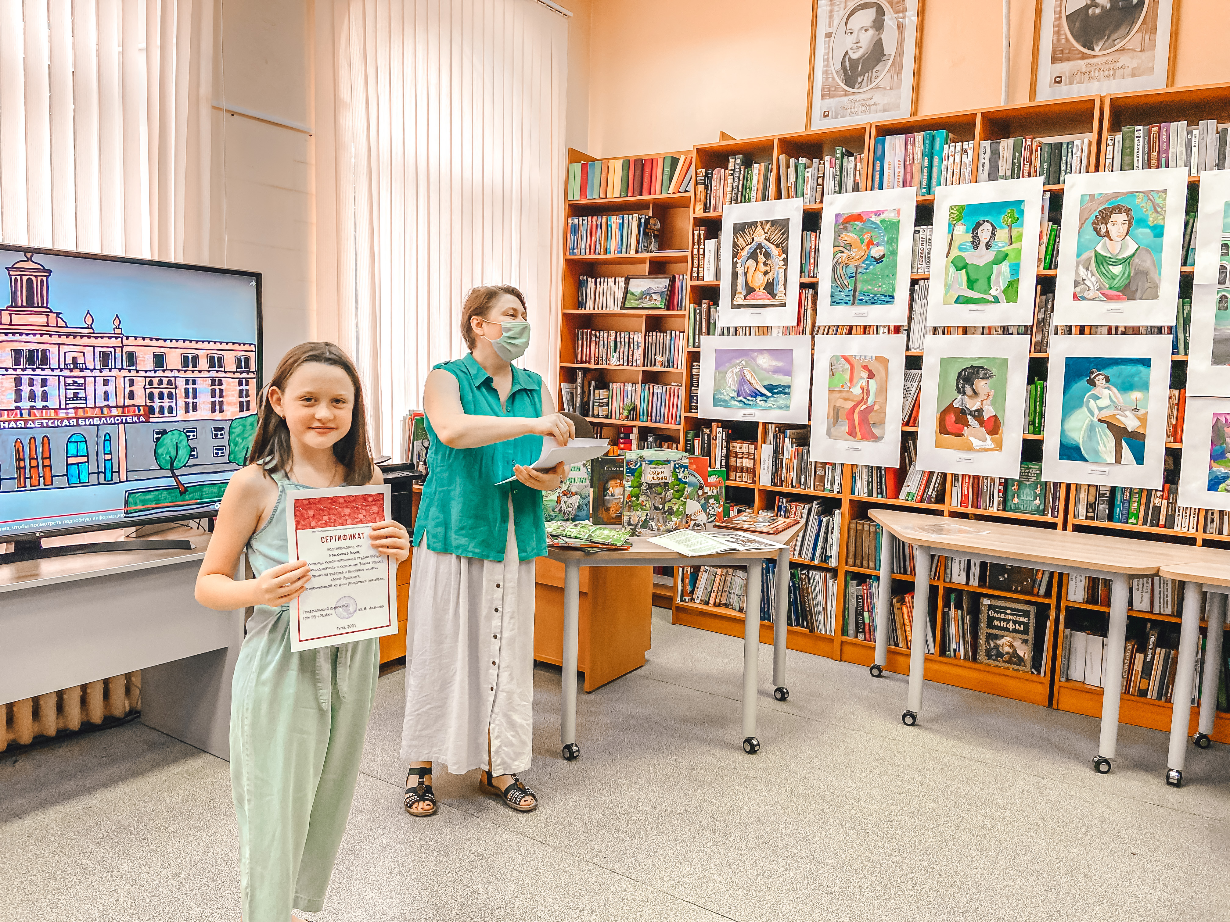 На открытии выставки юные художники представили небольшую концертную программу с чтением стихотворений и художественно-танцевальными композициями. А преподаватель студии Элина Торос рассказала об истории портретов Пушкина, а мы подготовили выставку книг Пушкина с иллюстрациями в разных стилях и провели экскурсию по библиотеке.