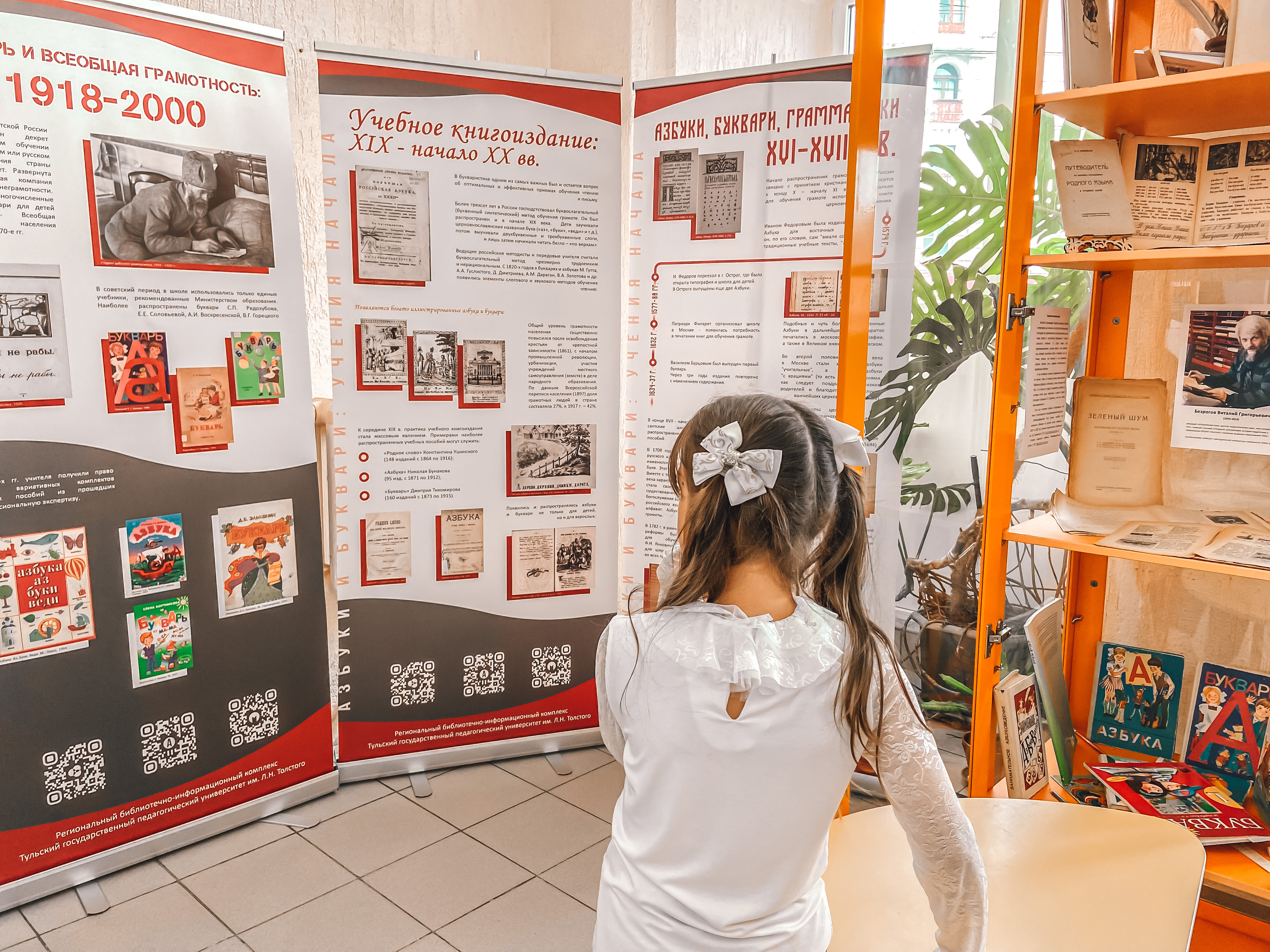 На открытии ученики Монтессори-центра смогли прочитать тексты, по которым учились их ровесники 100 и даже 200 лет назад, а также узнали об истории букварей от профессора Тульского государственного педагогического университета Екатерины Юрьевны Ромашиной и заведующего Тульской областной детской библиотекой Татьяны Викторовны Колчевой.