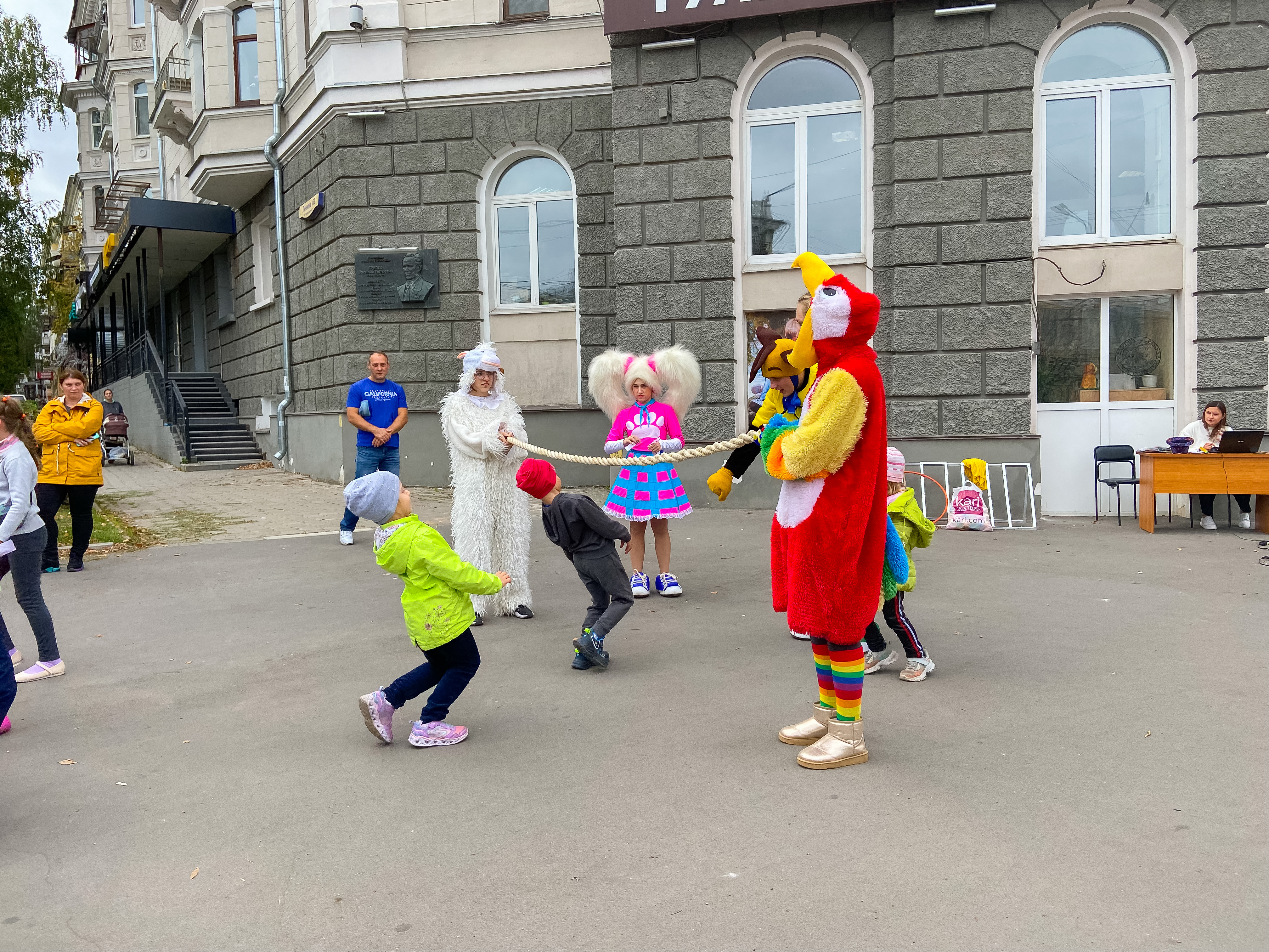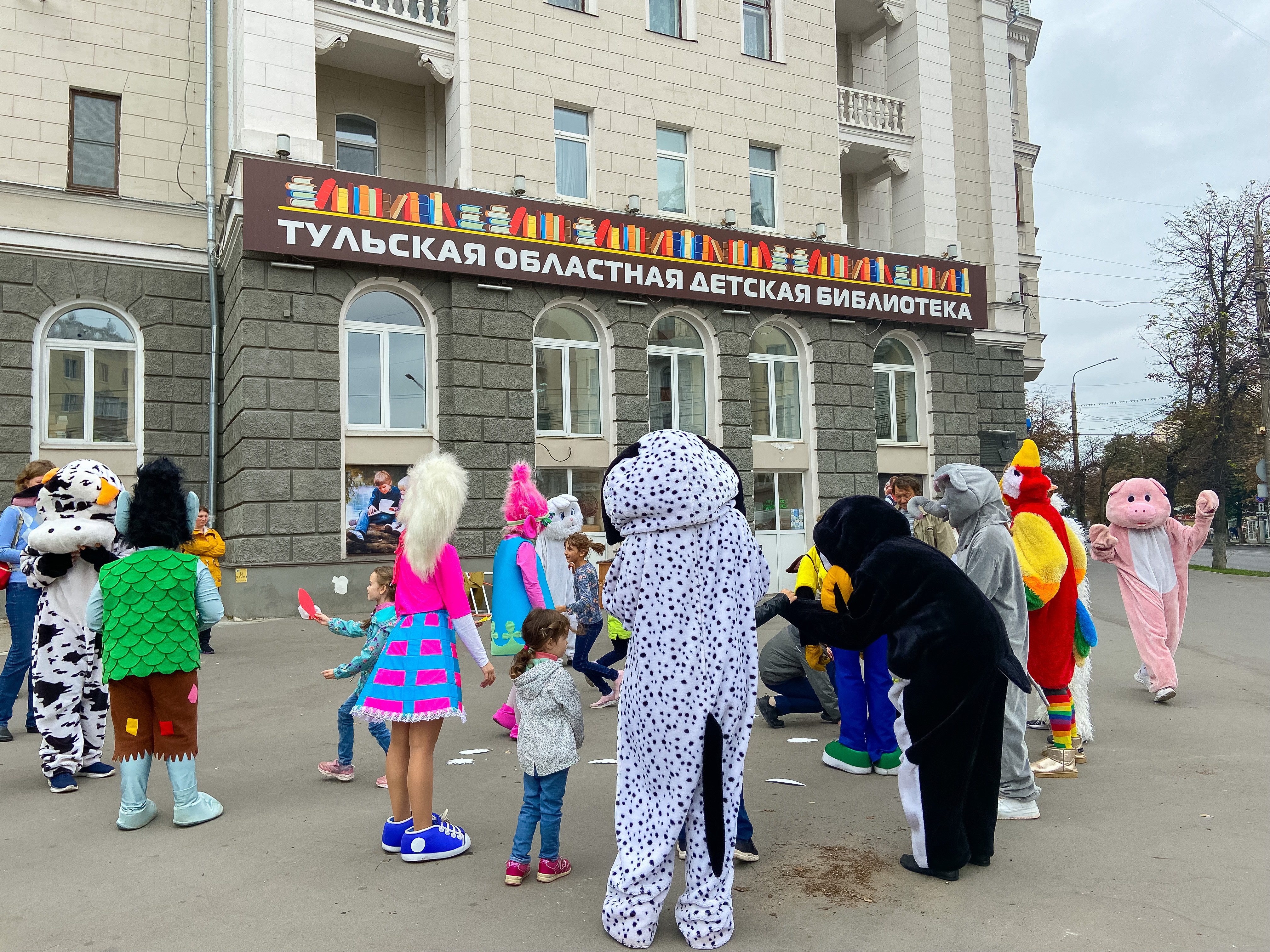 Возле нашей библиотеки вы могли попасть в настоящее «Мультиприключение»! Участников ждали подвижные игры и задания на сообразительность, танцы и викторины, музыкальные номера и праздничная лотерея. Благодарим студентов и преподавателей Тульского областного колледжа культуры и искусства – без ярких и забавных ростовых кукол наш праздник бы потускнел!