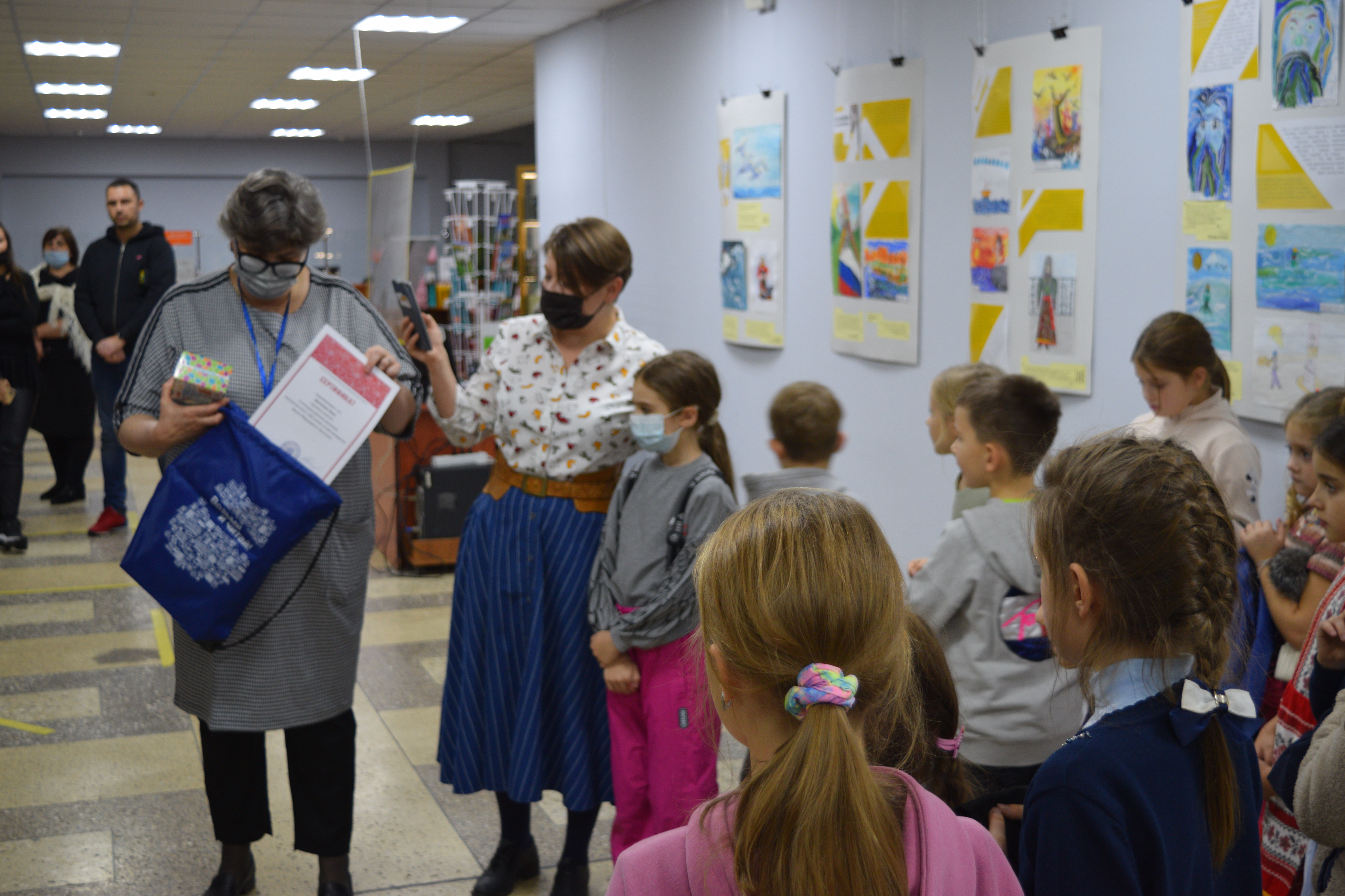 Экспозиция оформлена так, что рядом с рисунками можно увидеть цитаты из текстов, а также биографические справки. На открытии выставки вручили дипломы победителям: Абрамовой Мелиссе, Маслову Роману, Долгушевой Лидии, Долговой Варваре, Набоковой Виктории. Дети рассказали о своих работах, о прочитанных книгах И. Ф. Панькина, побывали в музее книжной культуры.
