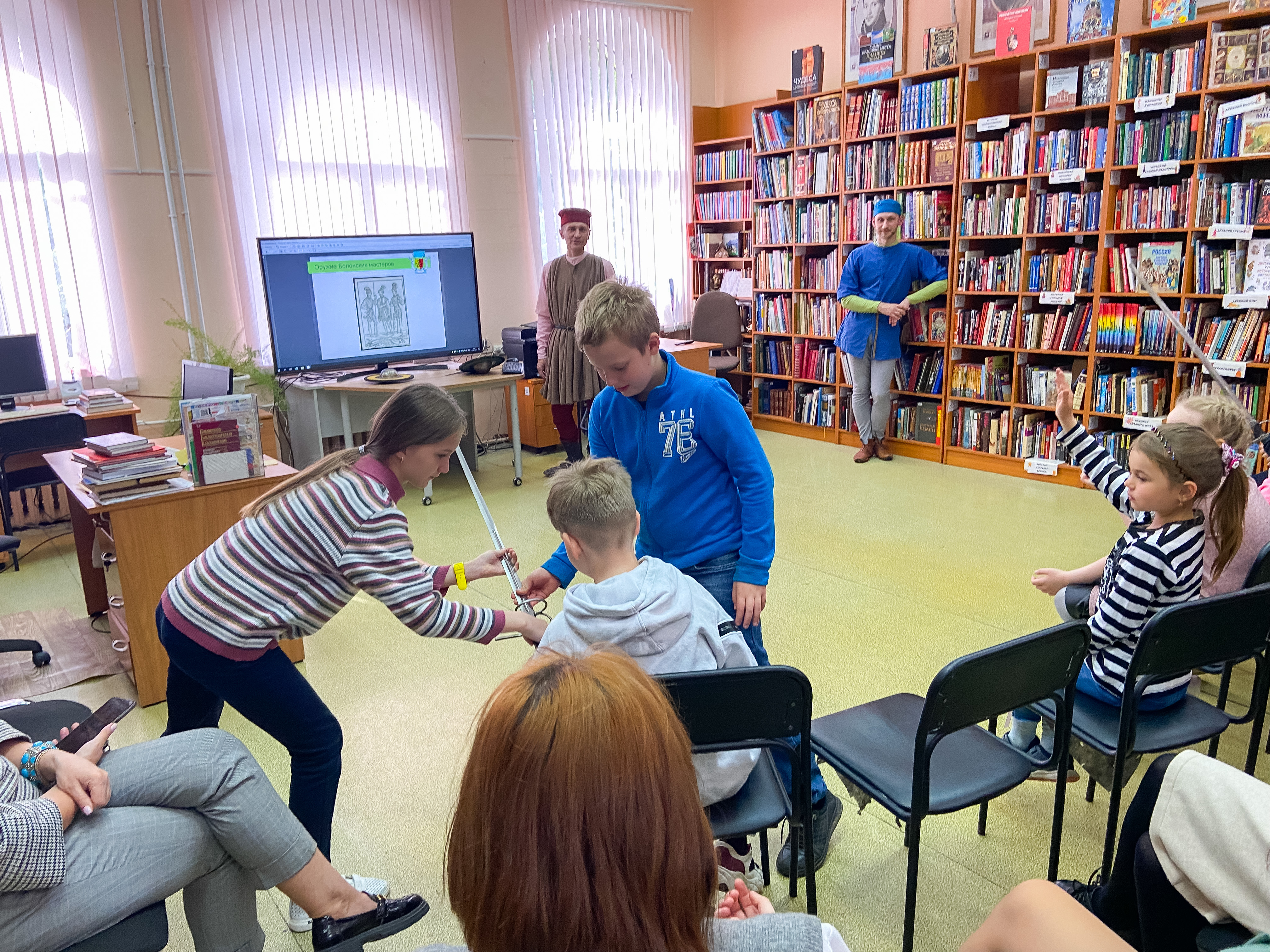 На лекции от руководителя «Воскресной школы фехтования» Алексея Гарагатого познакомились с болонским фехтованием – боевой системой, описанной различными мастерами города Болонья (Италия) в XVI – начале XVII века. Поговорили об истории и исторической реконструкции, о книжных и изобразительных источниках, оружии, приёмах и костюмах. Тренировочные мечи, кинжалы и щиты даже удалось подержать в руках!